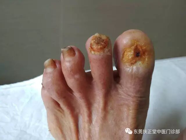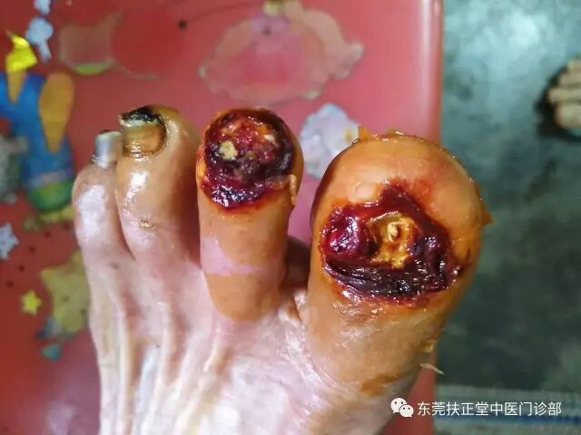 一个月前经亲属介绍,到东莞清溪扶正堂中医门诊部诊治,经尹志良主任细心询问和检查,考虑患者年寿较高,气血不足,及伤口消毒自行处理不当,故采用中医针灸调气血、通经络,并配以特色的中药外敷,患者经三次治疗后疼痛明显减轻,伤口处渐渐愈合,经过共十二次的治疗,左大脚趾伤口基本愈合,疼痛缓解。全家人大为赞赏,万分高兴。